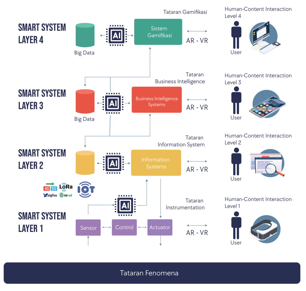 Smart System saat ini merupakan integrasi dari empat teknologi saat ini, Yaitu: IoT & Robotics, Human-Content Interaction, Modeling, Simulation & Artificial Intelligence yang diwujudkan dalam platform Big Data.